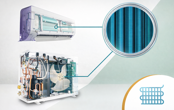 The Hydrophilic fins improve refrigerant condensation and evaporation processes