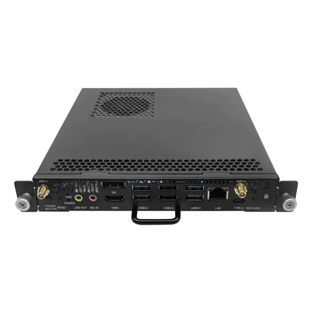 The Hikvision DS-D5AC12T5-8S2 OPS Module is a powerful and professional computing core designed to elevate interactive display performance in digital signage, collaboration boards, and commercial screens. As an OPS (Open Pluggable Specification) module, it integrates seamlessly with compatible displays and interactive panels, providing a compact all-in-one PC-grade processing solution without external CPUs or messy cabling. This module delivers reliable performance for multimedia playback, interactive applications, digital content management, and real-time system control, making it ideal for classrooms, meeting rooms, retail environments, and corporate hubs that require smooth and responsive digital experiences. Built with robust hardware and efficient thermal design, the DS-D5AC12T5-8S2 ensures stable operation during intensive tasks such as high-resolution video playback, touch-based collaboration, web browsing, and cloud-driven applications. Its modular design allows easy installation and upgrades, simplifying maintenance and maximizing longevity. By combining processing power, system integration, and professional-grade compatibility, this OPS Module provides a flexible, scalable, and future-ready platform that enhances the capabilities of compatible displays and digital signage solutions.
