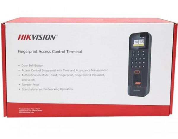 The DS-K1T804AMF K1T804A Pro Series Fingerprint Terminal is a professional biometric access control device designed to deliver accurate, secure, and efficient identity verification for commercial and industrial environments. It features an advanced fingerprint recognition algorithm that ensures fast and precise authentication, reducing waiting time during peak usage. The terminal supports multiple verification methods, including fingerprint, card, and password, offering flexible access control options to meet different security requirements. Its high-quality optical fingerprint sensor provides reliable performance even with frequent use. Built with a durable and modern design, the device is suitable for long-term indoor installations and maintains stable operation in daily access control scenarios. The terminal supports access control and attendance management functions, enabling organizations to track entry records and employee movement effectively. With simple installation and an intuitive user interface, the DS-K1T804AMF offers a dependable, secure, and user-friendly solution for offices, factories, schools, and other facilities requiring controlled access and accurate identity management.