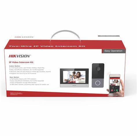 The DS-KIS603-P(C) IP Video Intercom Kit is a comprehensive and easy-to-install communication solution designed to enhance security and convenience for residential and small commercial properties. This kit combines a high-quality indoor monitor with a weather-resistant outdoor door station, enabling clear two-way audio and real-time video communication between visitors and occupants. It uses IP connectivity to deliver stable and smooth transmission, allowing users to view guests, speak with them, and remotely unlock doors from inside the property. The included indoor monitor features an intuitive touchscreen interface that makes it simple to manage calls, view video feeds, and access stored records. The outdoor station’s built-in camera provides clear imaging for accurate visitor identification, even in varying light conditions. With its smart design and reliable performance, the DS-KIS603-P(C) IP Video Intercom Kit supports seamless integration with other network devices and offers a practical, professional-grade solution for improved access control and visitor management in homes, villas, and offices.