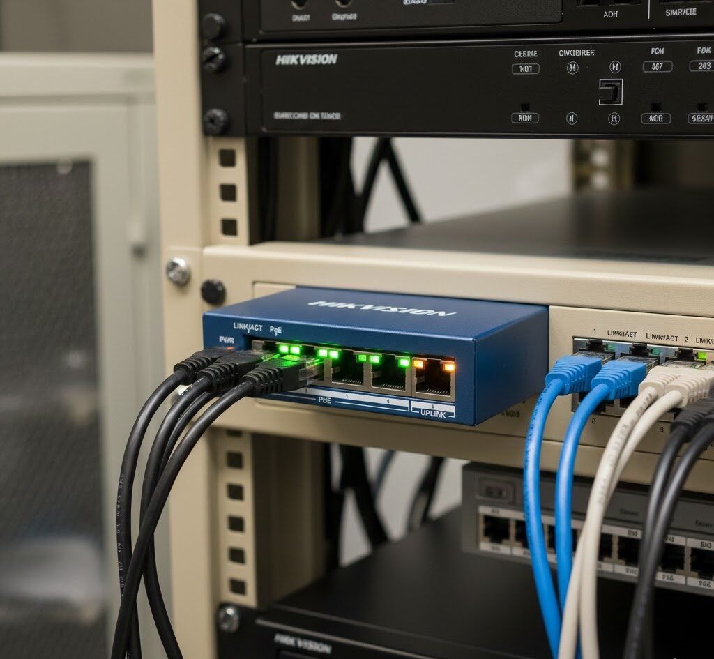 The Hikvision Switch (DS-3E0505P-E/M) is a compact and efficient network switch designed to provide stable connectivity for small-scale networks and smart surveillance systems. Equipped with 4 PoE (Power over Ethernet) ports and 1 uplink port, it allows simultaneous data transmission and power supply to connected devices such as IP cameras, access points, and other network equipment, eliminating the need for separate power adapters. The switch supports a reliable PoE power budget to ensure uninterrupted operation of all connected devices, making it ideal for home, office, or small business environments. It delivers high-speed data transfer, low latency, and enhanced network stability, ensuring smooth and secure communication across the network. Its user-friendly and compact design enables easy installation and integration into existing setups, while energy-efficient technology minimizes power consumption. With its durability and reliable performance, the DS-3E0505P-E/M provides an effective, scalable, and cost-efficient networking solution.
