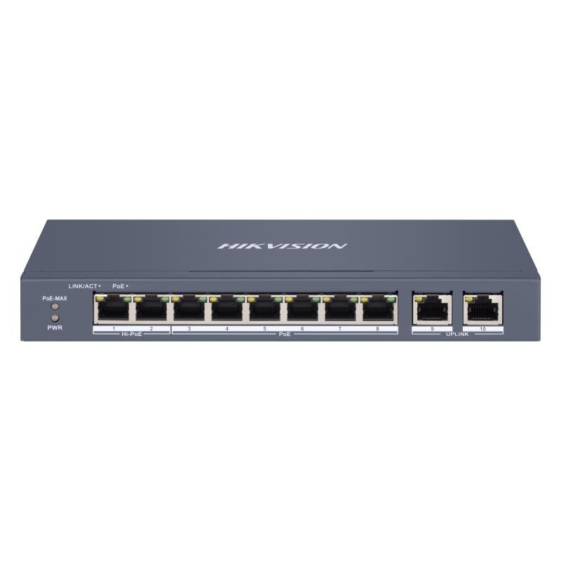 The Hikvision DS-3E1310HP-EI 8-Port Fast Ethernet Smart PoE Switch is a compact and efficient network switch engineered to support IP surveillance and access control systems with reliable connectivity and power delivery. Featuring 8 Fast Ethernet ports with PoE (Power over Ethernet) capability, it enables both network data and electrical power to be delivered over a single cable to connected devices such as IP cameras, access terminals, and wireless access points—streamlining installation and reducing cabling complexity. Its smart management features allow basic network configuration options, traffic control, and monitoring functions that help improve overall stability and performance. The PoE power management intelligently detects the power needs of connected devices and provides stable power while preventing overload, enhancing system safety and reliability. Built with a durable metal housing and effective heat dissipation design, the switch ensures consistent operation in security control rooms, equipment racks, or compact deployments. Easy to install and integrate with existing network infrastructure, the DS-3E1310HP-EI is ideal for small to medium surveillance installations in offices, retail stores, institutions, and commercial settings, providing a practical, scalable, and dependable PoE networking solution.