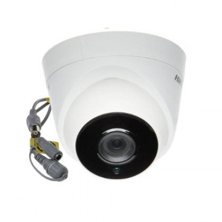 The Hikvision DS-2CE56D8T-IT3E (3.6 mm) is a 2 MP Full HD analog turret camera engineered for dependable, 24/7 video surveillance in homes, shops, offices, or small commercial sites. It uses a 2.0-megapixel progressive-scan CMOS sensor, producing crisp 1080p video at 25 fps (PAL) or 30 fps (NTSC). The fixed 3.6 mm lens provides a balanced field of view (~82.6° horizontally), ideal for monitoring medium-sized areas like rooms, hallways, or entrances. With low-light sensitivity down to 0.005 lux — and 0 lux with IR — the camera captures usable footage even at night. Its IR illumination extends up to ~40 meters, delivering clear black-and-white night-time video. The built-in 120 dB True WDR, 3D DNR, BLC, and Smart IR enhance image quality across varying lighting conditions, while PoC (Power over Coax) support simplifies installation by delivering power and signal over a single cable. Ruggedly built with metal housing and rated IP67, the DS-2CE56D8T-IT3E is weather- and dust-resistant, making it suitable for both indoor and outdoor use — a cost-effective, reliable choice for basic surveillance needs.