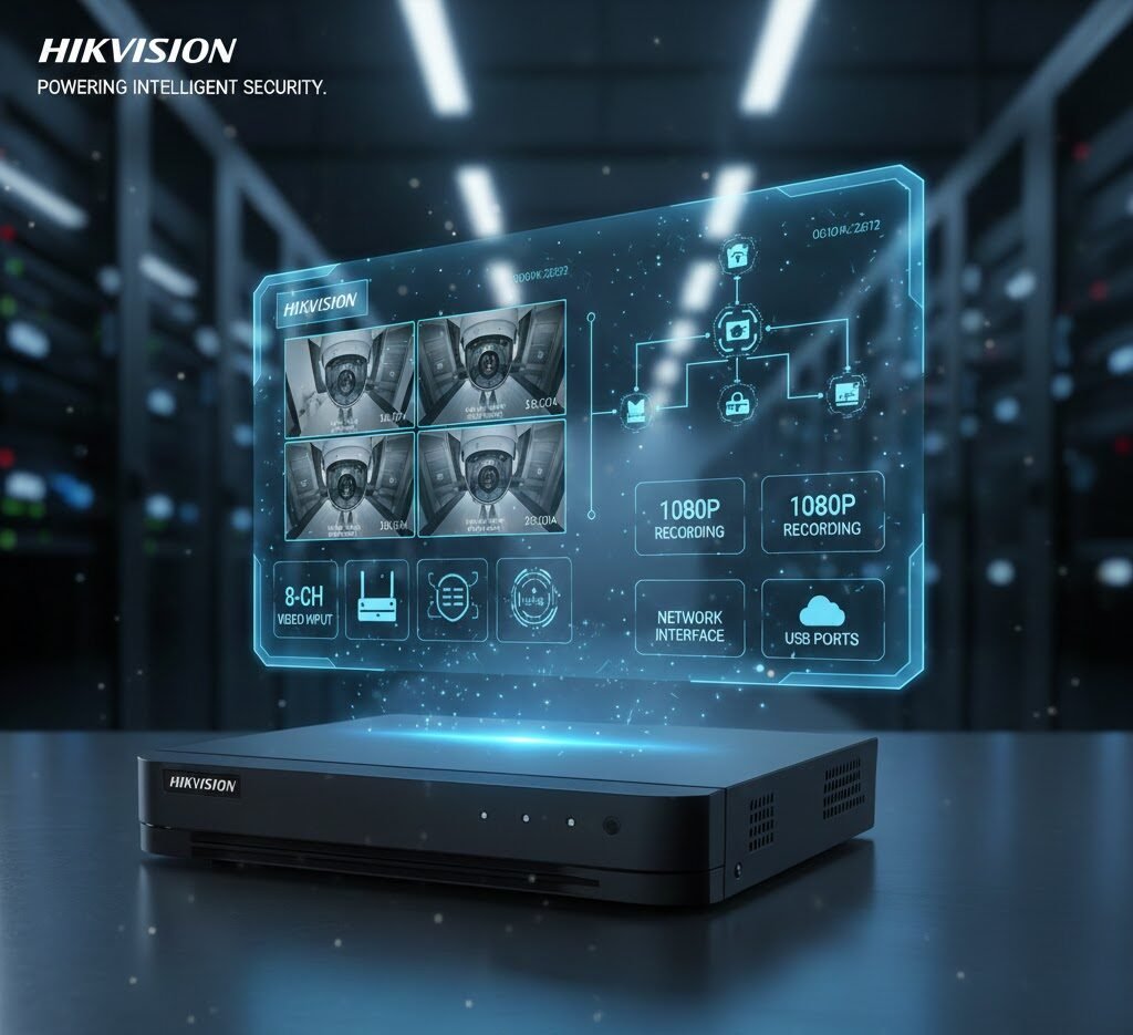 The Hikvision DVR (DS-7208HGHI-K1) (S) 8 Channel is a reliable digital video recorder designed to support efficient and stable surveillance for residential and commercial environments. It supports up to eight analog camera channels, making it suitable for medium-sized security installations that require comprehensive coverage. The DVR delivers clear and consistent video recording, ensuring dependable footage for monitoring and playback purposes. With efficient video compression technology, it optimizes storage usage while maintaining good image quality, allowing longer recording durations on supported hard drives. The user-friendly interface enables easy navigation for live viewing, recording management, and playback, even for first-time users. It also supports audio input, enhancing overall surveillance awareness. Remote access functionality allows users to monitor live video and review recordings through compatible mobile devices and computers from anywhere. Built with stable hardware and dependable performance, the DS-7208HGHI-K1 (S) offers a cost-effective and practical solution for small to medium security systems.