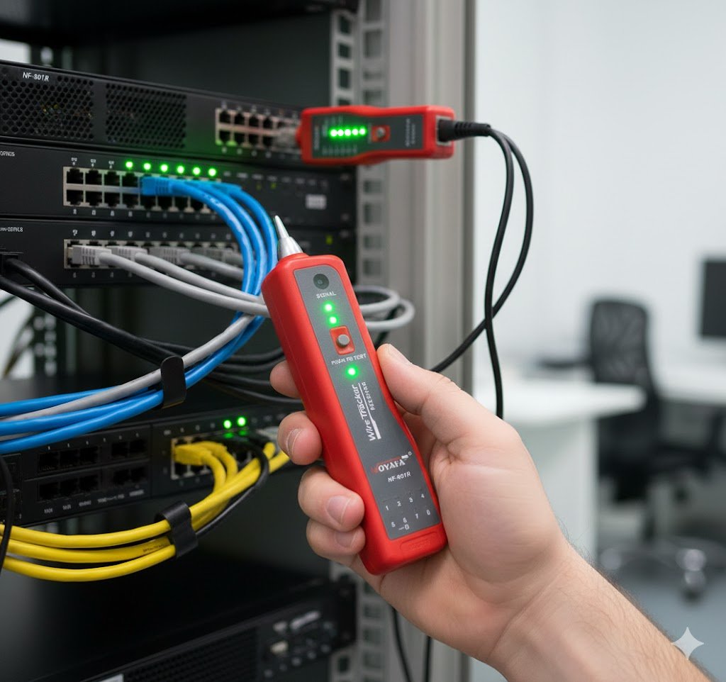 The OCS HM-T225 Cable / Tone Tracer is a professional tool designed for locating and tracing cables, wires, and telephone lines in residential, commercial, and industrial installations. It allows technicians to quickly identify and follow the path of cables without damaging insulation, making troubleshooting, maintenance, and installation tasks more efficient. The device typically includes a tone generator and probe, enabling signal injection into a cable and detection along its route, even through walls or conduit. Constructed from durable materials, the HM-T225 ensures long-term reliability and stable performance in demanding environments. Its ergonomic and portable design allows easy use in tight spaces, while clear indicators simplify cable identification and tracing. Ideal for network, telephone, and low-voltage wiring systems, the OCS HM-T225 Cable / Tone Tracer is an essential tool for professionals seeking accurate, efficient, and safe cable management and diagnostics.